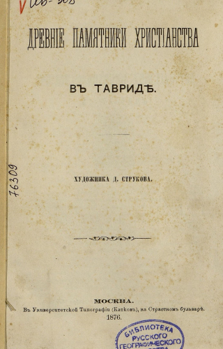 Древние памятники христианства в Тавриде / [Соч.] Худож. Д. Струкова. - Москва : Унив. тип. (Катков), 1876