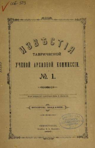 Известия Таврической Ученой архивной комиссии. № 1-5. - 2-е изд. - Симферополь : Печ. М.Б. Карскаго, 1897