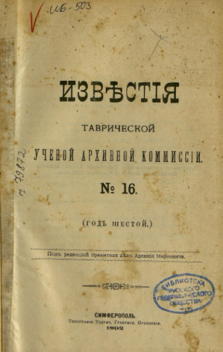 Известия Таврической Ученой архивной комиссии. № 16-19. - Симферополь : Тип. Таврич. Губ. прав., 1892