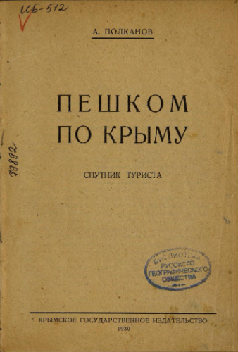 Полканов, Александр Иванович. Пешком по Крыму : спутник туриста / А. Полканов. - Симферополь : Крымгосиздат, 1930