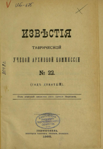 Известия Таврической Ученой архивной комиссии. № 22-24. - Симферополь : Тип. Таврич. Губ. правл., 1895-1896