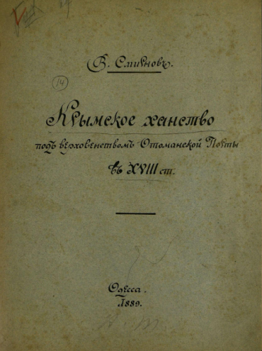 Крымское ханство под верховенством Отоманской Порты в XVIII в. до присоединения его к России / В. Смирнов. - Одесса : [б. и.], 1889