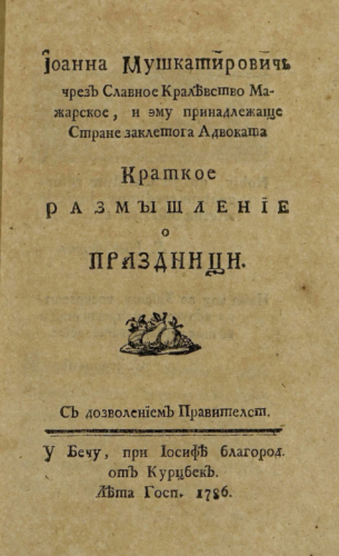 Мушкатирович, Йован (1743-1809). Краткое размышление о праздници / И. Мушкатирович. - Вена : Курцбек, 1786