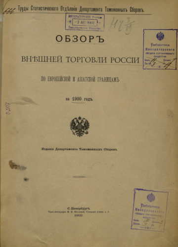 Обзор внешней торговли России по европейской и азиатской границам за 1900 год. - Санкт-Петербург : Департамент таможенных сборов, 1902
