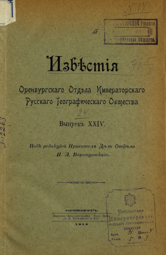 Известия Оренбургского отдела ИРГО. Вып. XXIV - Оренбург, 1914