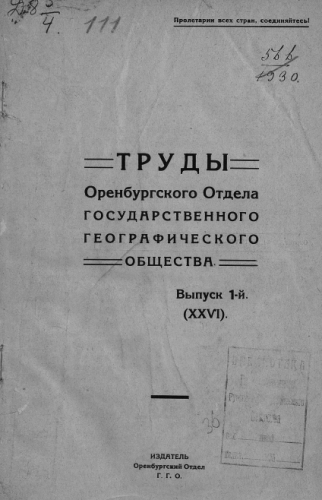 Труды Оренбургского отдела Государственного географического общества. Вып. 1 (XXVI). - Оренбург, 1928