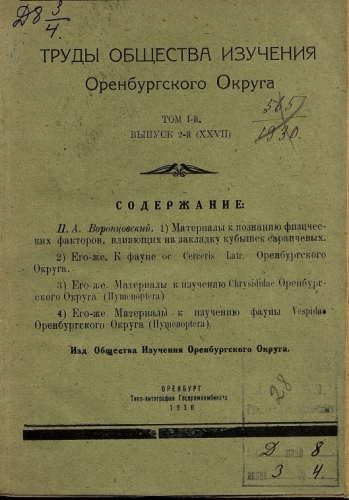 Труды Общества изучения Оренбургского округа. Т. 1, Вып. 2 (XXVII). - Оренбург, 1930