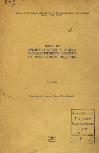 Известия Средне-Азиатского отдела Государственного Русского географического общества. Т. XVIII - Ташкент, 1928