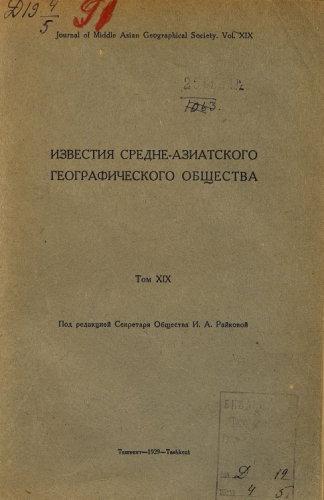Известия Средне-Азиатского географического общества. Т. XIX - Ташкент, 1929