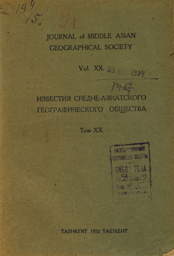 Известия Средне-Азиатского географического общества. Т. XX - Ташкент, 1932