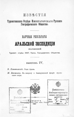 Известия Туркестанского отдела ИРГО. Т. IV : Научные результаты Аральской экспедиции. Вып. 4 - Ташкент, 1903