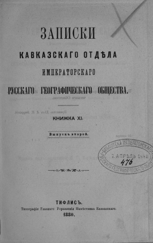 Записки Кавказского отдела ИРГО. Кн. XI, Вып. 2 : Хеврусия и хеврусы. (Опыт монографии) : Описание путешествия, соверш. летом 1876 г. д-ром Густавом Радде - Тифлис, 1880