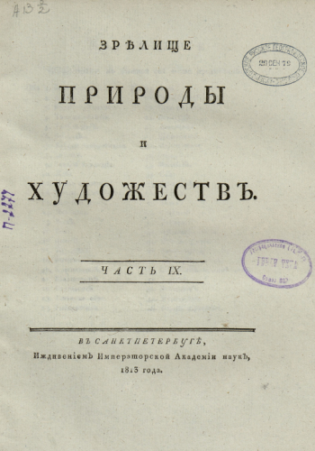Зрелище природы и художеств. Ч. IX. / ижд. Имп. Акад. наук. - Санкт-Петербург, 1813