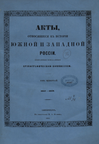 Акты, относящиеся к истории Южной и Западной России, собранные и изданные Археографической комиссией. Т. 4 : 1657-1659. - Санкт-Петербург : Тип. П.А. Кулиша, 1863