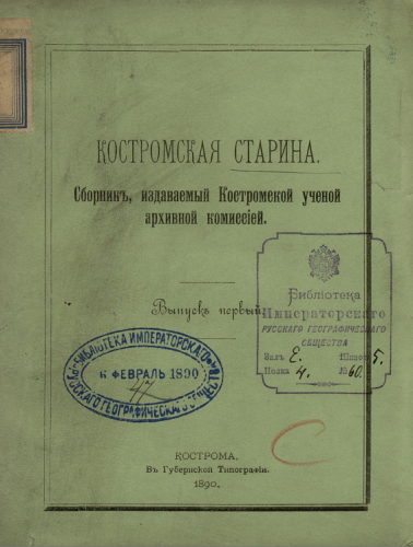 Костромская старина : Сборник, издаваемый Костромской ученой архивной комиссией. Вып. 1. - Кострома : Губ. тип., 1890