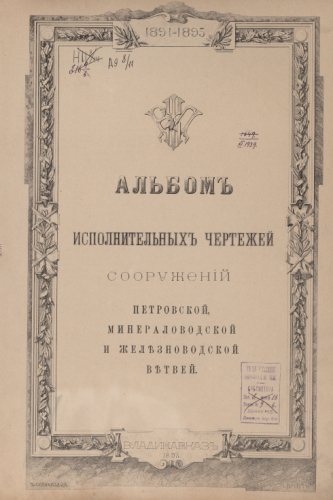 Альбом исполнительных чертежей сооружений Петровской, Минераловодской и Железноводской ветвей / Общество Владикавказской железной дороги. - Владикавказ, 1897