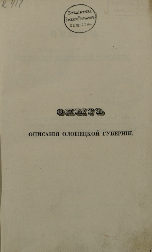 Бергштрессер, Карл Федорович (1808-1874). Опыт описания Олонецкой губернии / сост. К. Бергштрессером. - Санкт-Петербург : Тип. Экспедиции заготовления гос. бумаг, 1838