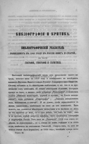 Библиографический указатель, вышедших в 1860 году в России книг и статей по части географии, этнографии и статистики