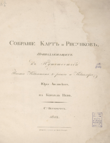 Лисянский, Юрий Федорович (1773-1837). Собрание карт и рисунков, принадлежащих к Путешествию флота капитана 1-го ранга и кавалера Юрия Лисянского, на корабле Нева. - Санкт-Петербург : Мор. тип., 1812