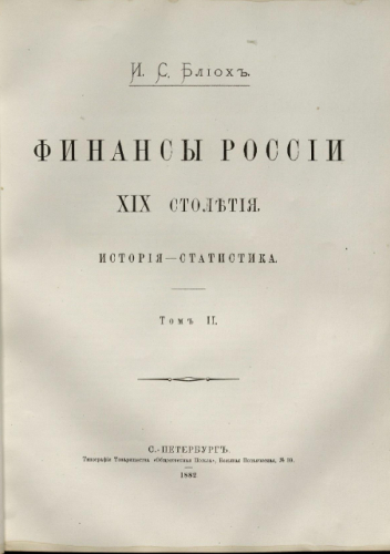 Блиох, Иван Станиславович (1836-1901). Финансы России XIX столетия : история - статистика. Т. 2. / И.С. Блиох. - Санкт-Петербург : Тип. М.М. Стасюлевича, 1882